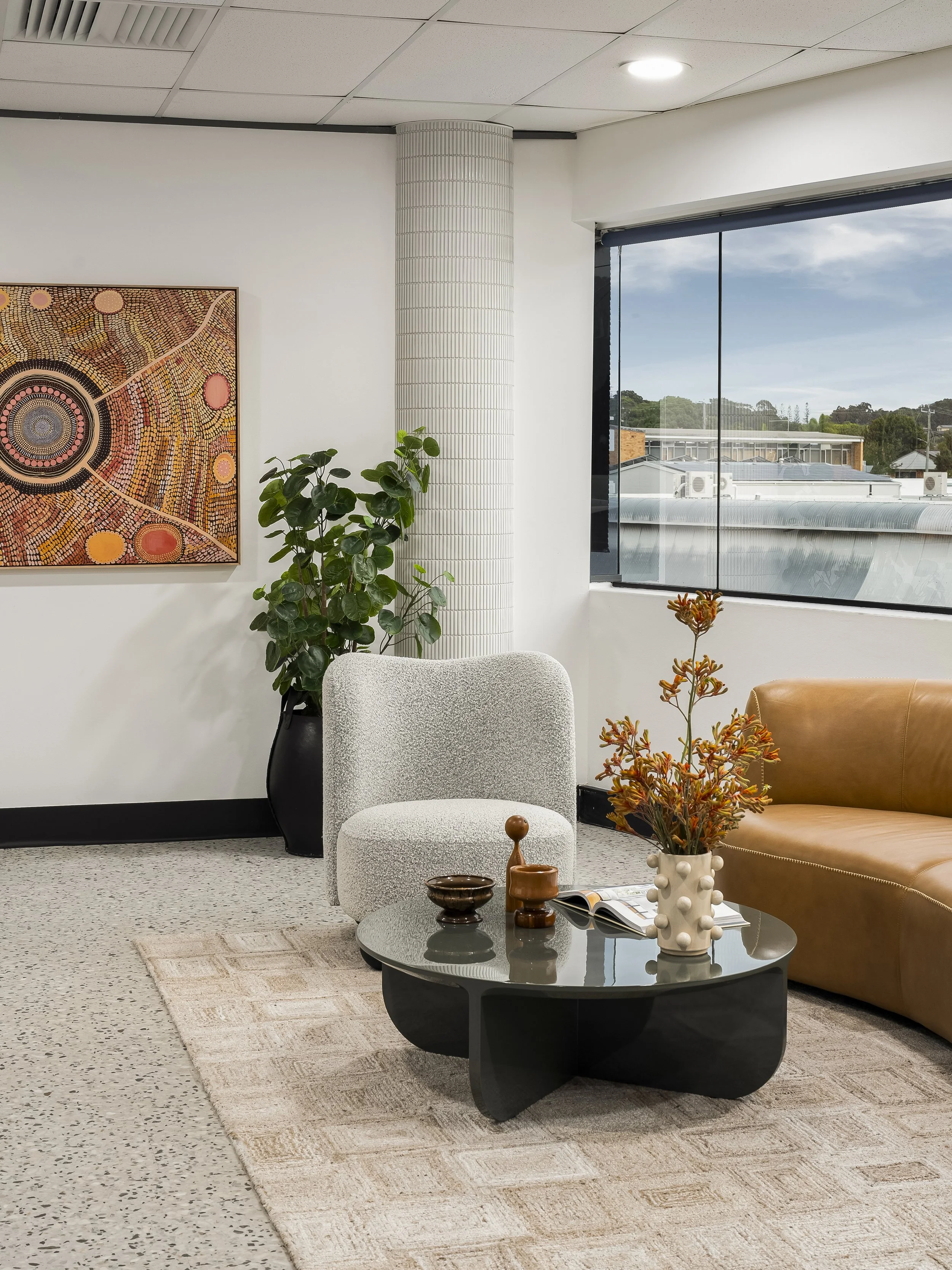 Commanding 874sqm corner landholding this Coffs Harbour high profile commercial building was due for a revamp. Taking inspiration from it’s notoriety, building design with the vision to breathe new life into the property we put together a concept which lent into character filled waiting spaces, meaningful local indigenous art, natural stone surfaces, bespoke feature lightings, and commercial grade luxurious flooring.